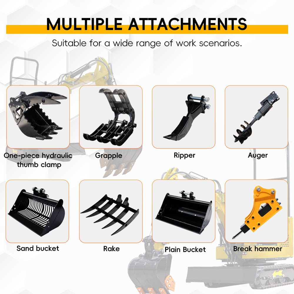 Efficient Operation: With a 15-inch smooth bucket for mini excavators and a maximum digging depth of 57.09 inches, offering precise and efficient excavation.