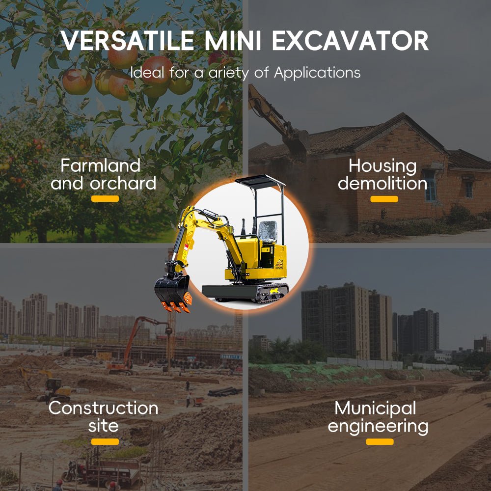 Compact Design: Operating Weighing 900 kg, this small hydraulic crawler excavator is ideal for tight spaces in farms, gardens, orchards, parks, and public areas.