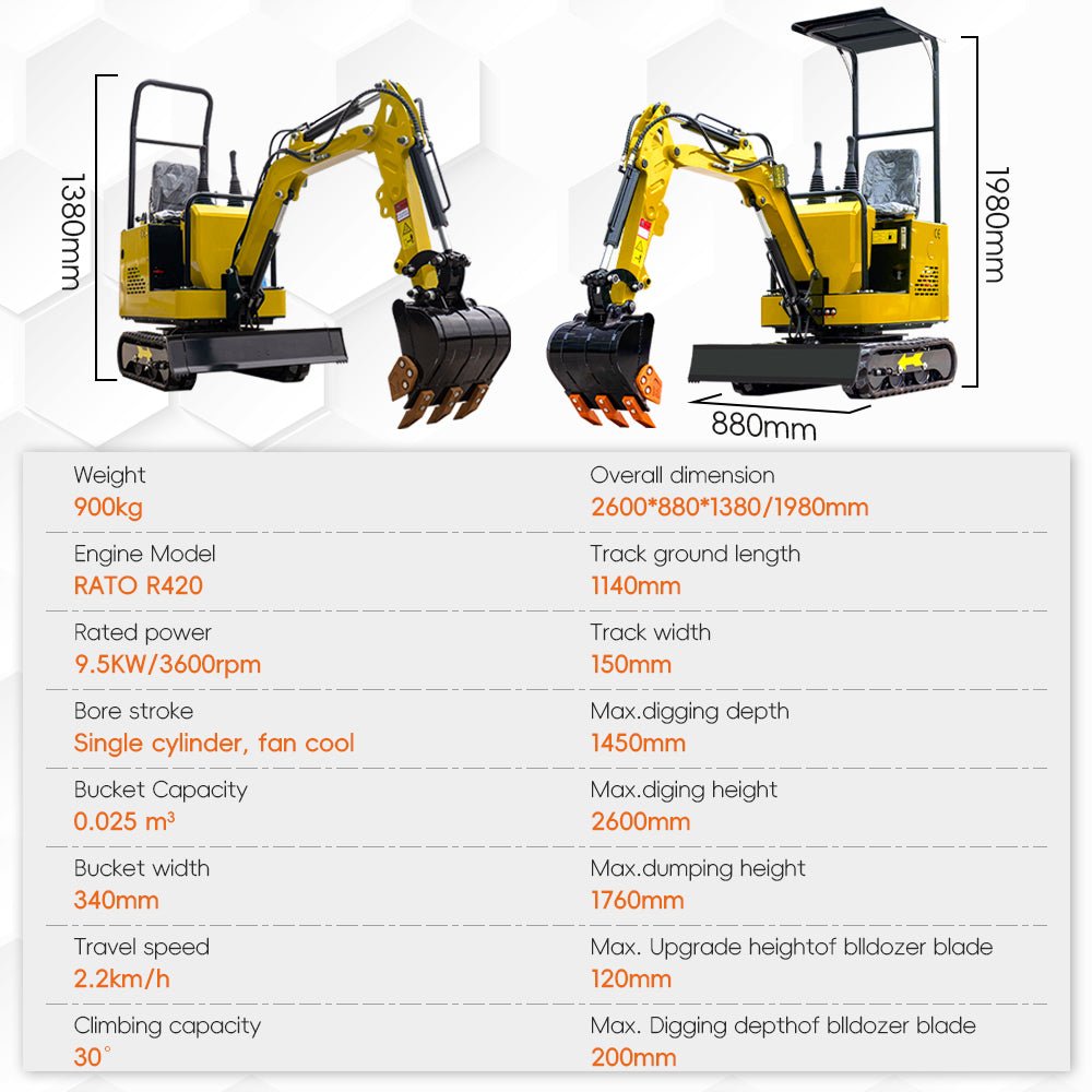 This 0.9-ton mini excavator is powered by a premium RATO 13.5HP engine with up to 8.5KW of power for powerful yet fuel-efficient operation and superior heat distribution. Bid farewell to grating vibrations, savor flawless functioning, and anticipate its longevity.