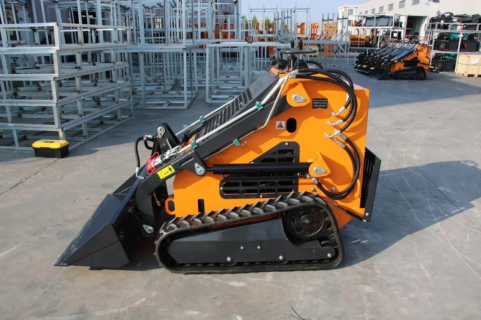NEW, UNUSED 2025 LANDHERO HT-380 MINI SKID TRACK LOADER POWERED BY 23HP GAS V-TWIN ENGINE. JOYSTICK CONTROLS, AUXILARY HYDRAULICS, LED LIGHTS, 7″ TRACKS, 43″ WIDE, DINGO STYLE QUICK ATTACH BUCKET, RIDING PLATFORM. 60″ DUMPING HEIGHT, 840LB LIFT CAPACITY.