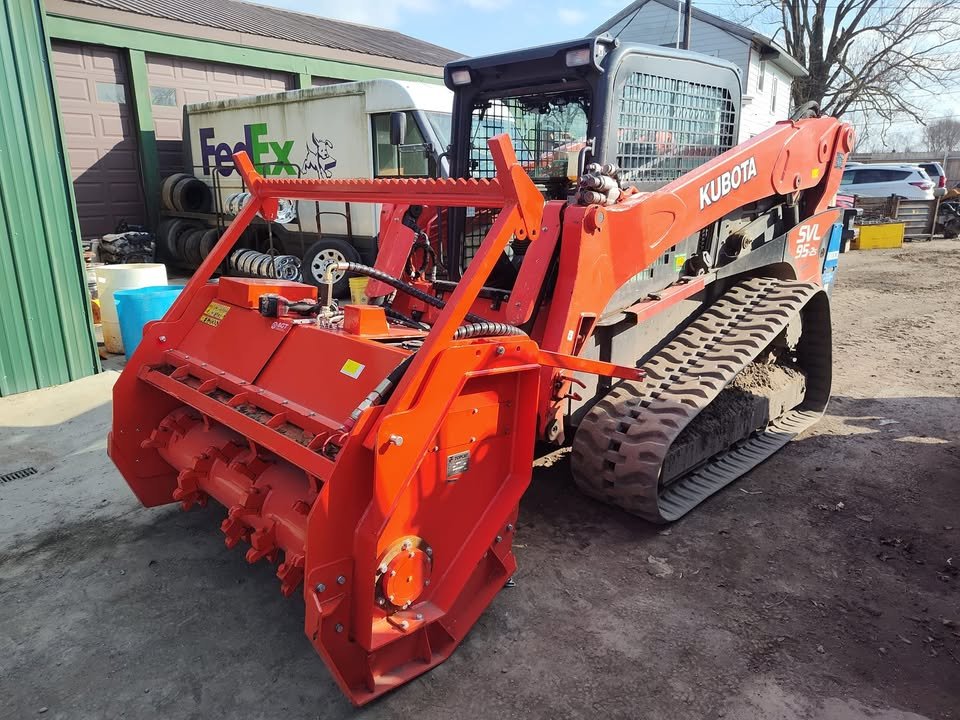 NEW 81″ AGT HD DRUM MULCHER FOR SKID STEER. WORKING FLOW 24-32 GPM. CUT UP TO 8″ DIAMETER, 4″ CUT DEPTH, 40 MULCHING TEETH, ADJUSTABLE PUSH BAR, 1543LBS.