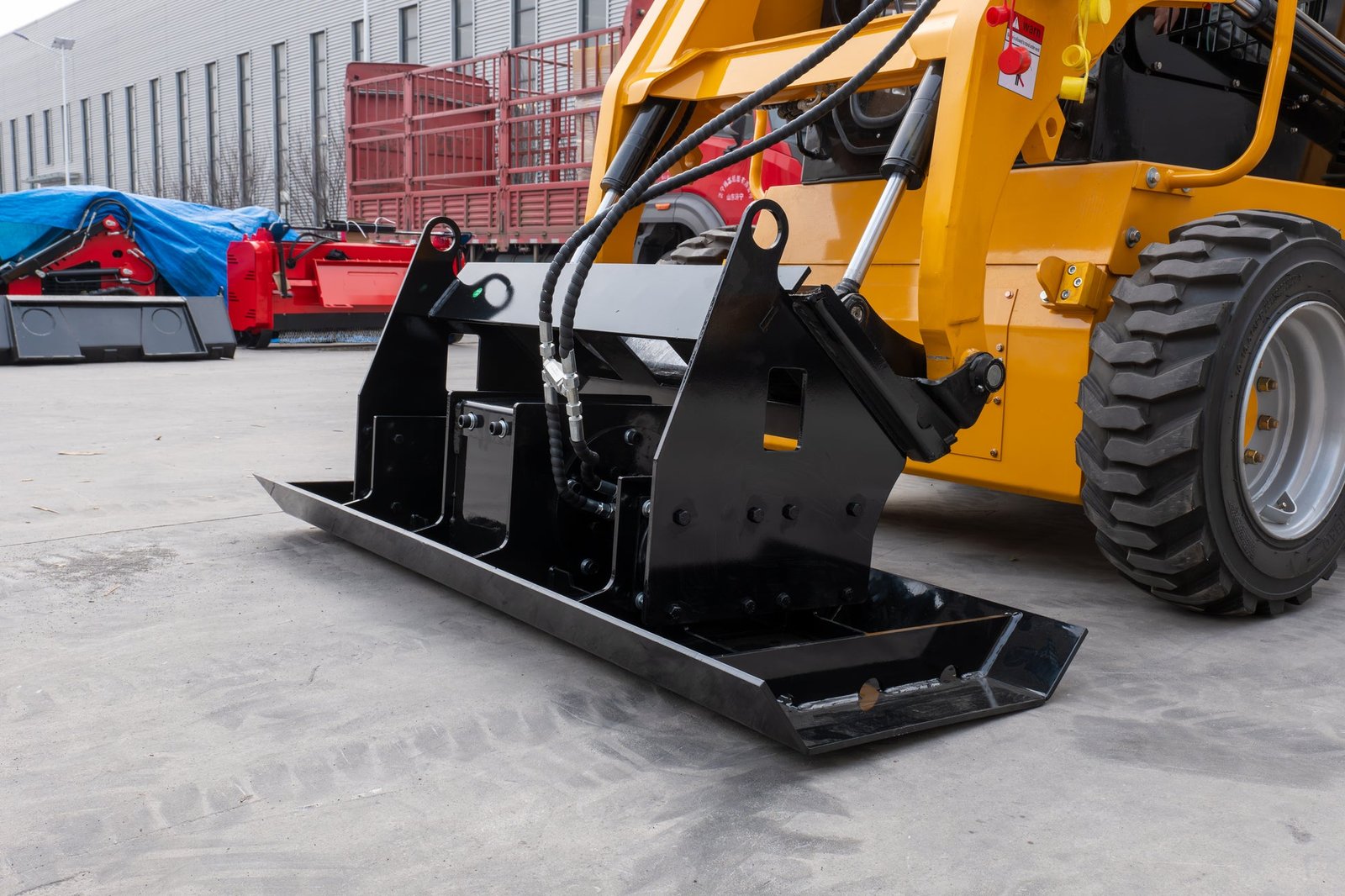 MMS skid steer plate compactor Attachment is an indispensable equipment in building construction, used for compaction of soil, foundation and other building materials engineering machinery. Typically used for soil compaction at building sites, road construction and lawns, flower beds and other garden facilities, it can effectively compact soil and building materials, improve the load-bearing capacity and stability of foundations, and is suitable for a variety of soil types, including sand, clay and gravel.
