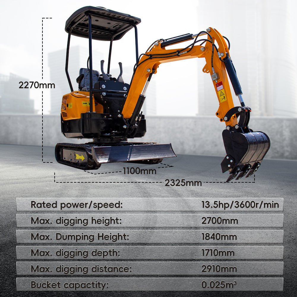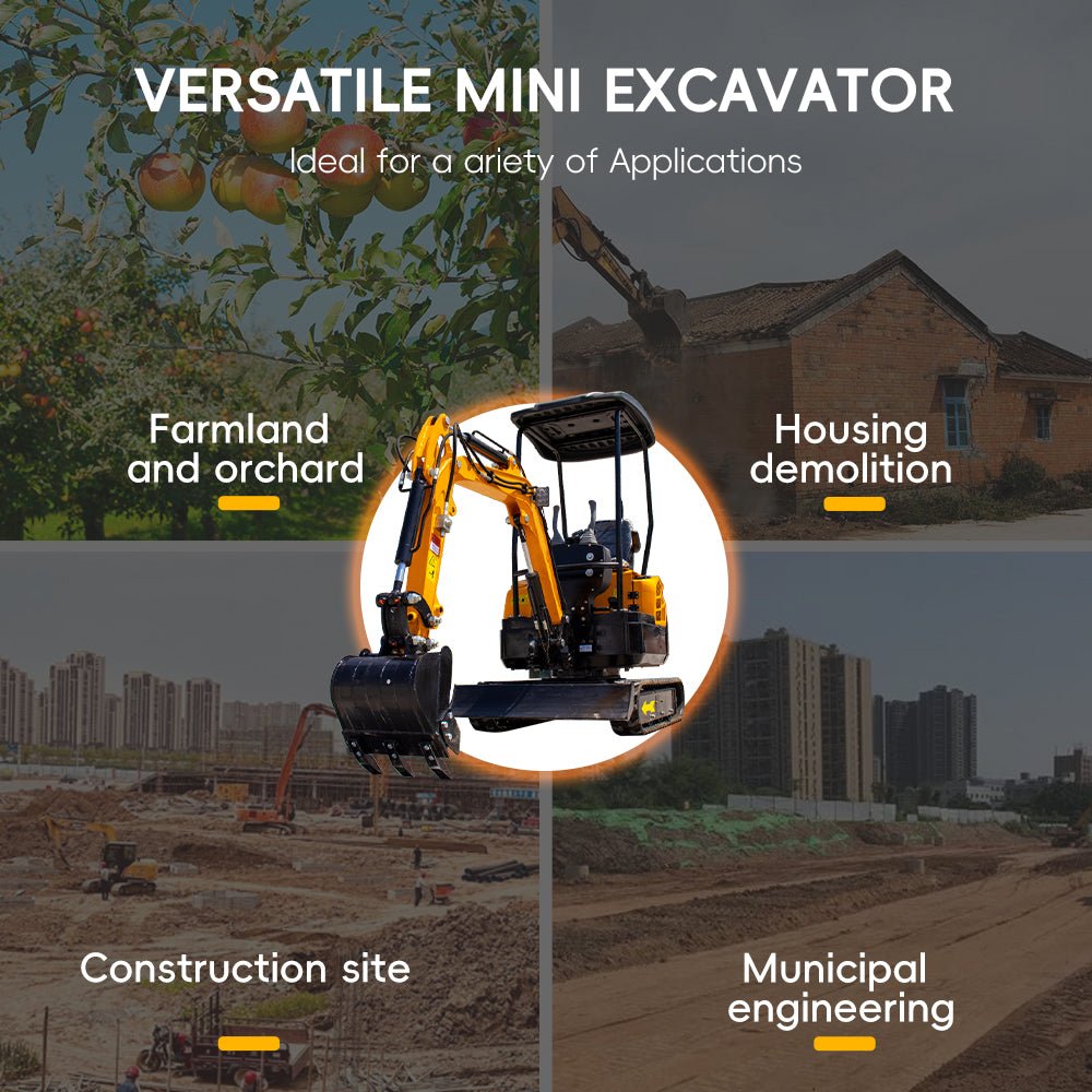 Compact and Versatile: This small excavator is built to handle diverse terrains, and is compatible with various mini excavator implements for added functionality.