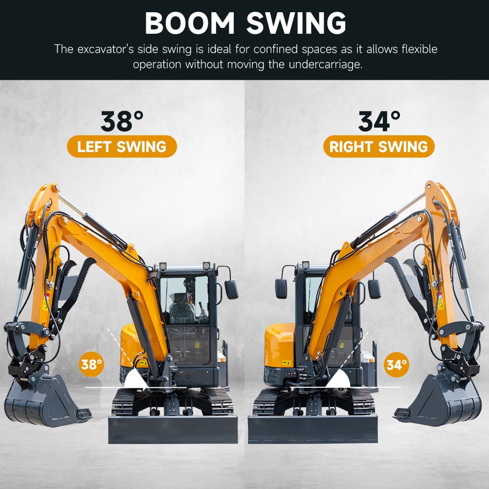 Our 3.5-ton mini excavator is equipped with a powerful 38° left swing and 34° right swing function, especially suitable for working in narrow spaces. You don’t need to constantly adjust the machine to work in those hard-to-reach areas. This kind of flexibility can make your work more comfortable and improve your working capability.