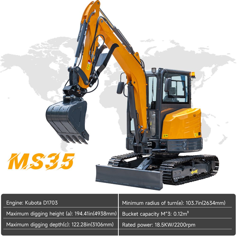 Powerful Engine: The MMS small excavator is powered by a Kubota engine. It provides strong power, low fuel consumption, and excellent stability.