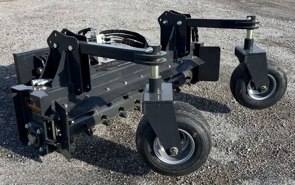 The Power Rake provides the optimal combination of power and durable. This Power Rake Soil Conditioner has been engineered for rugged use and straight-forward, no-nonsense maintenance. Experience soil conditioning performance that can stand up to the harshest applications thanks to a massive 6,000 series motor providing industry-leading weight and toque. This motor combined with an optimized drum size and aggressive, 2″ teeth can handle even the most rugged surfaces, tear up roots and small stumps, and leave behind a clean and fresh seed bed. Features Raking Width: 72″ Angle: Fixed Left and right swing angle: ±25° Teeth: Alloy Material Number of teeth: 88 Drum Speed: 320 r/min Tires: 2 Grass Tires Shipping weight: 1300 lbs Shipping dimension: 88″ x 70″ x 31″